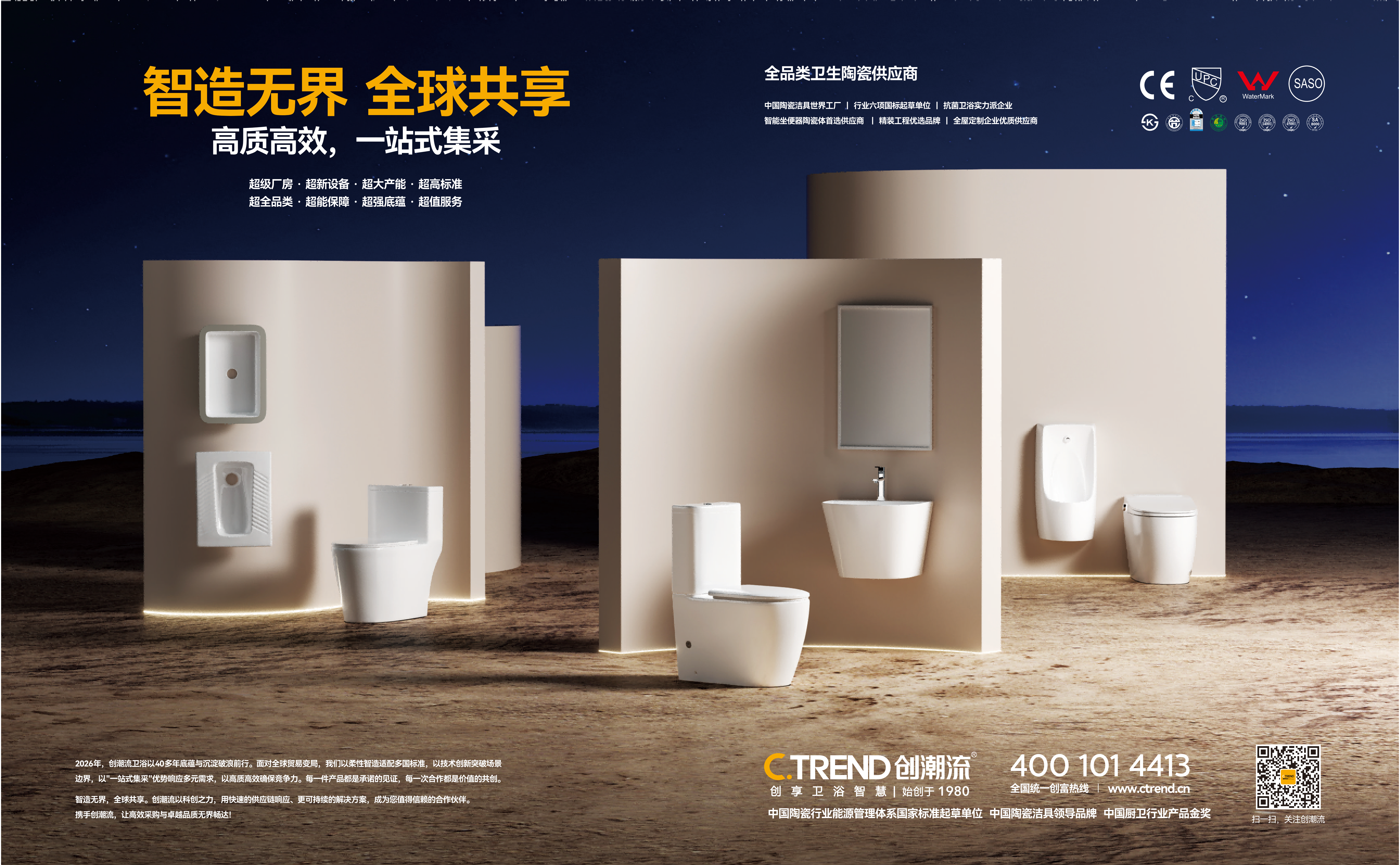 创潮流卫浴成立30多年来,一直专注于国际市场,长期与诸多大型国际卫浴品牌商OEM合作,公司在澳大利亚设有品牌分支机构,在全球20多个国家注册了公司自主品牌“CTREND创潮流”商标,公司产品遍布澳洲、东南亚、俄罗斯、美国、南美洲、印度、中东等50多个国家和地区,品牌信誉及产品品质深得国际买家的广泛认可。
